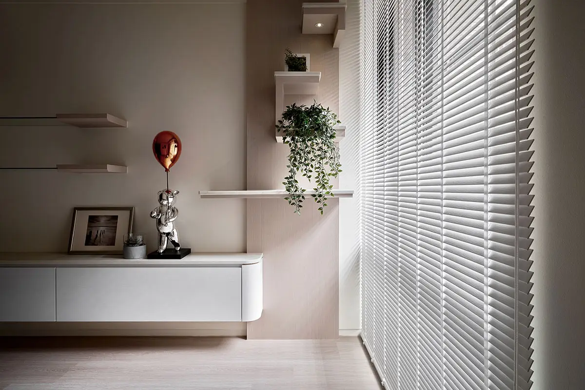 此空間以極簡主義為核心,運用平滑的線條與簡約的材質構築出一個清爽而靜謐的氛圍。牆面選用淺色系大理石紋路,輕柔的紋理與自然光影交疊,增添空間的層次感與視覺延展性。